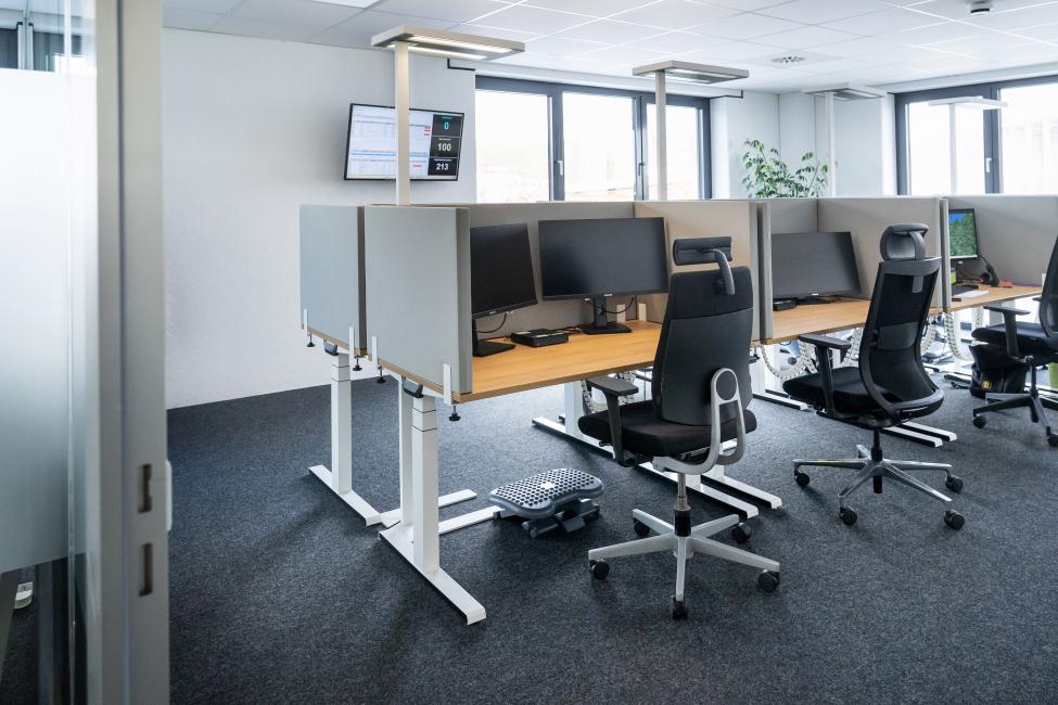 Beim ADAC Truckservice haben wir Arbeitsplätze gestaltet, die nicht nur effizient sind, sondern auch die Gesundheit der Mitarbeiter unterstützen: Höhenverstellbare Schreibtische, ergonomische Stühle, ein professionelles Lichtkonzept und durchdachte Raumaufteilungen bieten den perfekten Rahmen für konzentriertes und produktives Arbeiten.